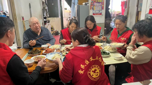 欢声笑语中,一个个饱满的饺子新鲜出锅,一碗碗热气腾腾的饺子端到老人面前。志愿者们围坐在老人身边,陪着老人一起吃午饭,饭桌上的温馨场景,仿佛一家人团聚般其乐融融。“孩子们一来,家里就热闹了,我心里也暖和。”关叔吃着饺子,脸上洋溢着幸福的笑容,眼中满是感动。除了打扫卫生、陪伴吃饭,志愿者们还为老人检查了家中的水电设施,叮嘱老人注意冬季保暖和用火用电安全,让老人在生活上无后顾之忧。