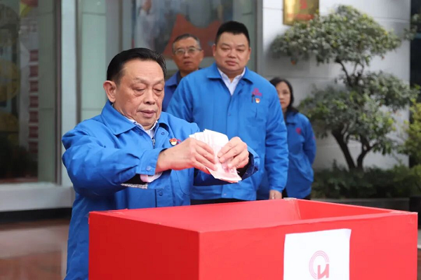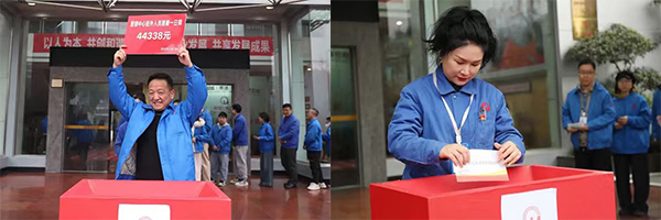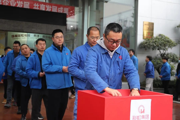 彩虹集团各分公司代表将爱心善款投入捐款箱